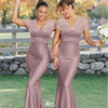 Elegant Pink V-Neck Short sleeves Mermaid Long Bridesmaid Dresses Online, WGM415