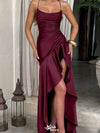 Sexy Burgundy Spaghetti Strap High Low Long Prom Dress Ideas, Evening Party Dresses,WGP1845
