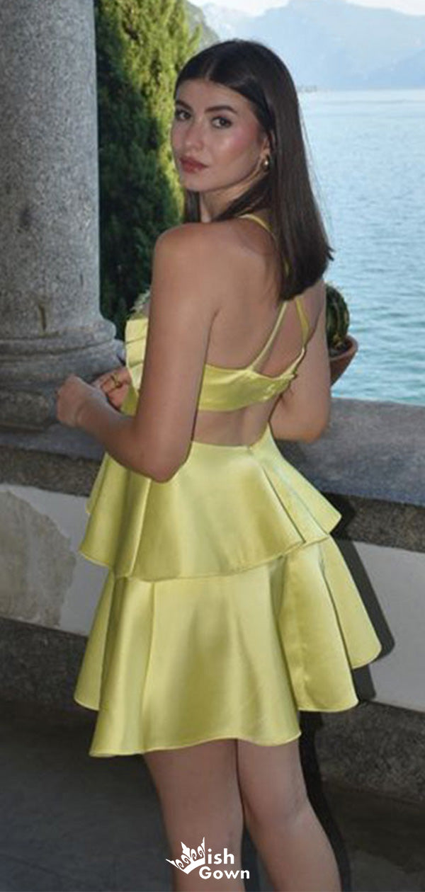 Elegant Spaghetti Strap A-line Short Mini Homecoming Dress,EPT434