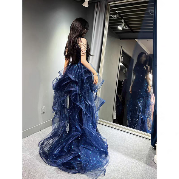 Shiny Blue Halter Mermaid Long Prom Dress Ideas, Evening Party Dresses