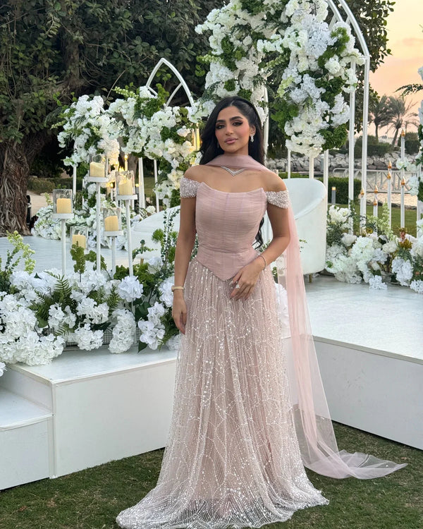 Elegant Pink Off-Shoulder Sleeveless A-Line Long Prom Dress Ideas, Eve
