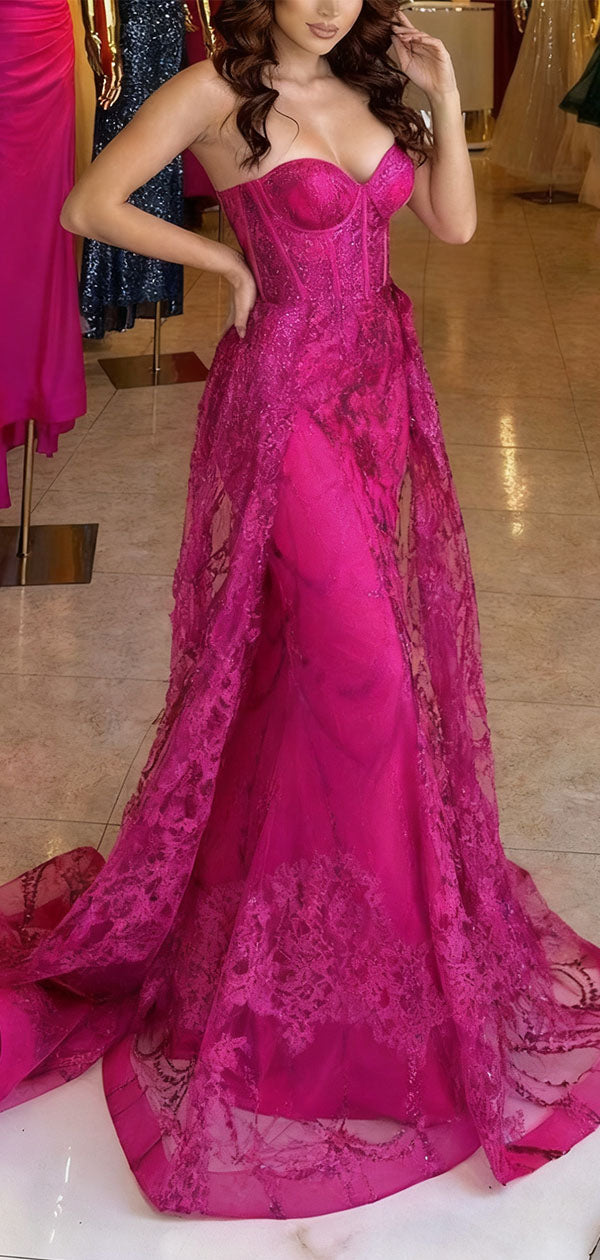 Gorgeous Pink Sweetheart  A-Line Lace Long Prom Dress Ideas, Evening Party Dresses , WGP1576