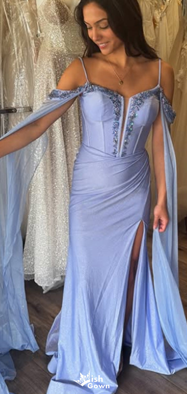 Gorgeous Spaghetti Strap Off-shoulder Mermaid Long Prom Dress Ideas, E