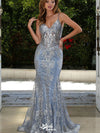 Shiny Blue Spahetti Strap Mermaid Long Prom Dress Ideas, Evening Party
