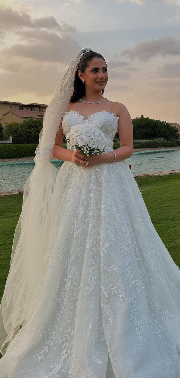 Elegant White Sweetheart Sleeveless A-Line Long Wedding Dresses With Sweep Trailing,WDH162
