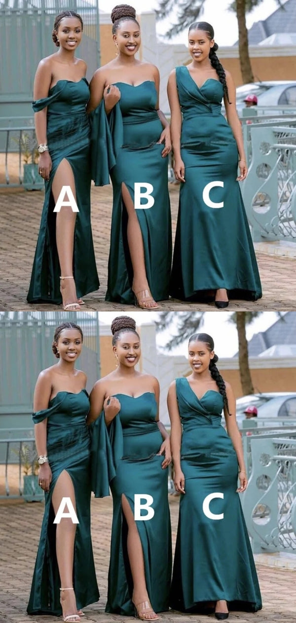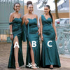 Elegant Green Mermaid Side Slit Sleeveless Wedding Guest Bridesmaid Dresses,WGM349