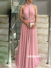 Elegant Dusty Pink Halter Backless Long Prom Dresses PG1228