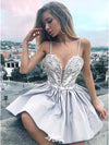 Elegant Gray Spaghetti Strap Lace Sleeveless Popular Cheap Short Homecoming Dresses, Birthday Party EPT214
