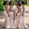 Elegant Mermaid Straps V Neck Sleeveless Popular Cheap Maxi Long Wedding Guest Bridesmaid Dresses,WGM272