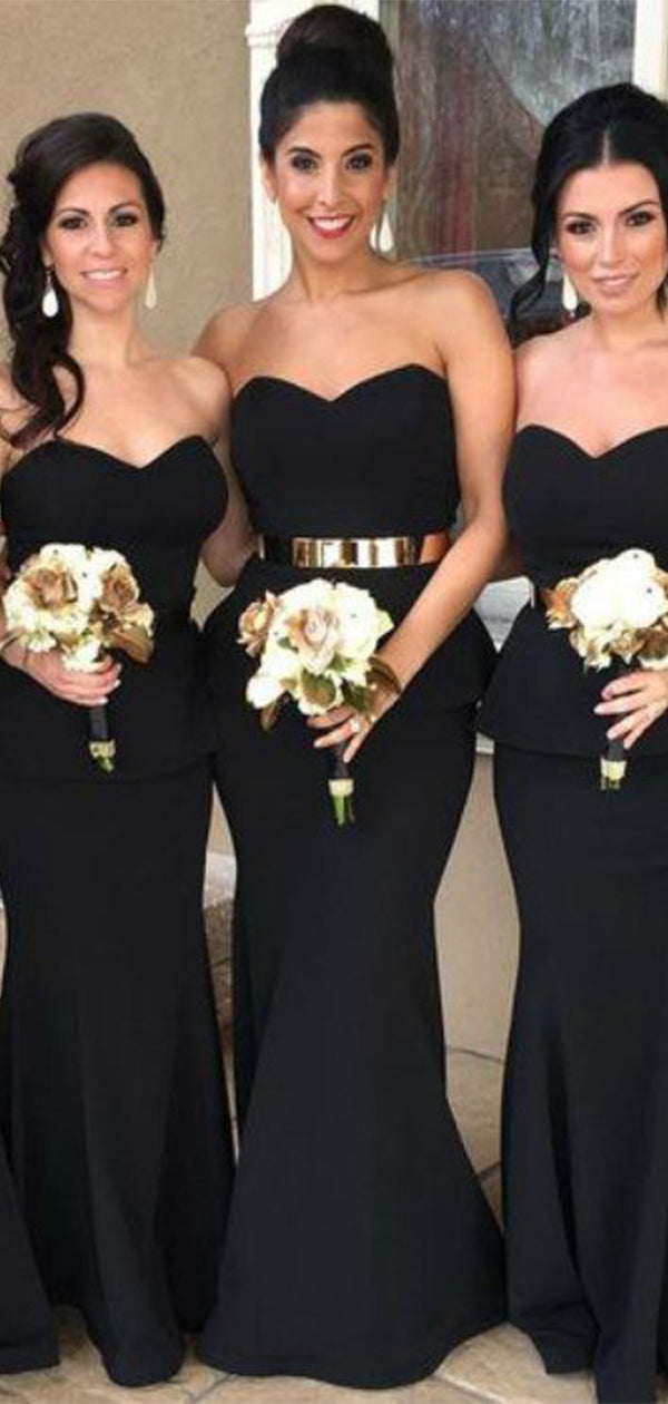 Elegant Black Mermaid Sweetheart Sleeveless Wedding Guest Bridesmaid Dresses,WGM354