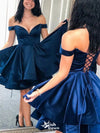 Elegant Blue Off-shoulder Criss-Cross Back Cheap Short Homecoming Dresses, EPT191