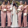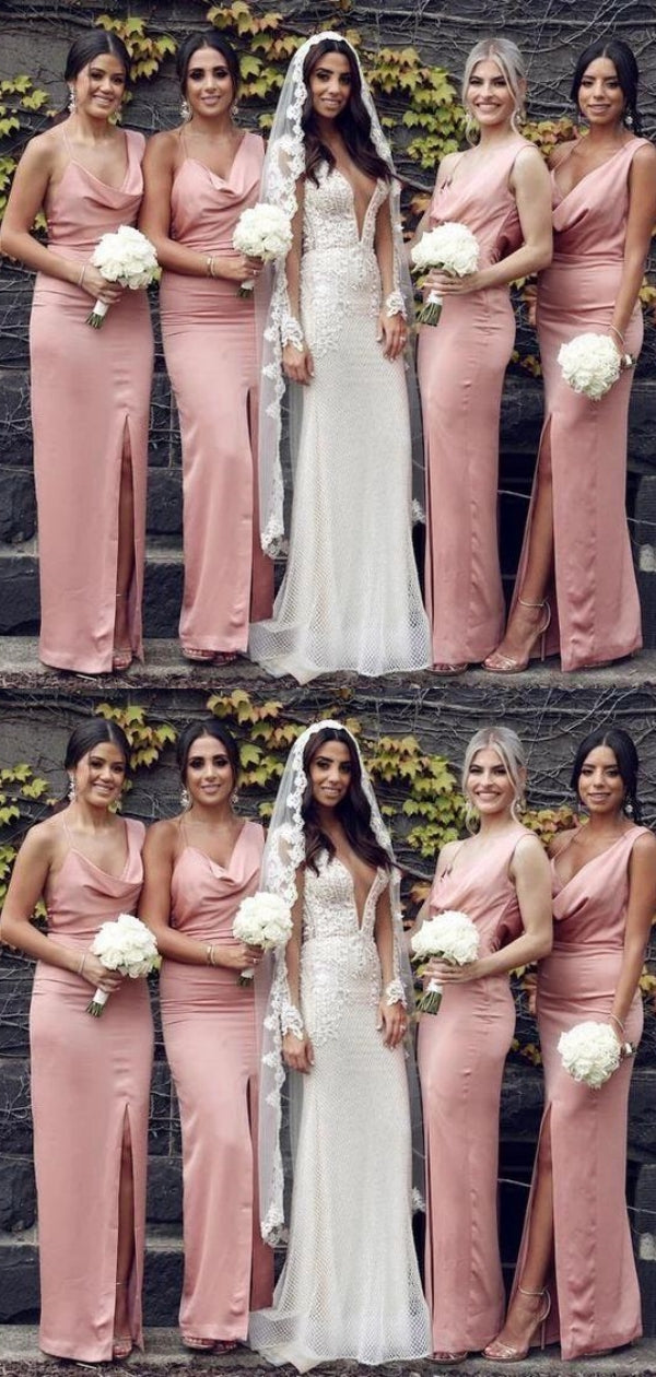 Simple Mermaid Spaghetti Straps Cowl Side Slit Sleeveless Wedding Guest Bridesmaid Dresses,WGM346