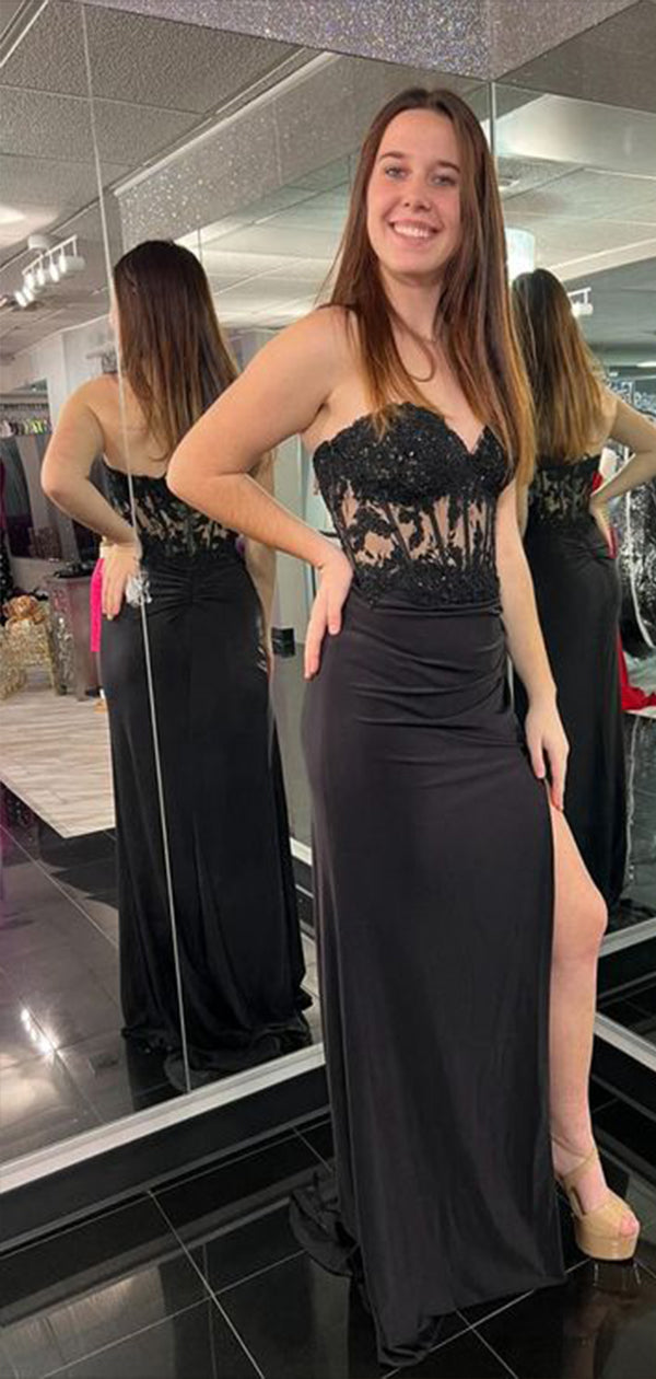 Charming Black Mermaid Sweetheart Sleeveless Side Slit Applique Cheap