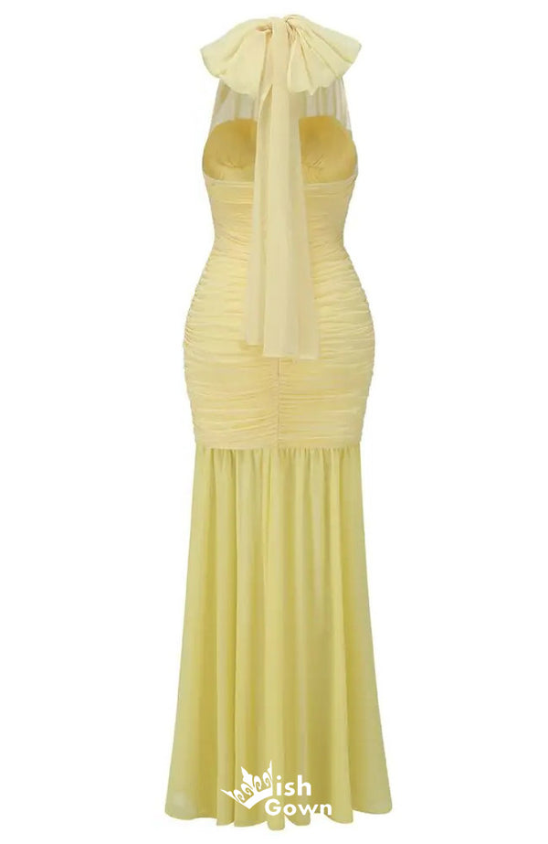 Stylish Yellow Mermaid Chiffon Long Prom Dresses ,WGP1071