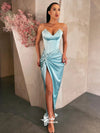 Sweetheart Satin Strapless Pleats Slits Mermaid Evening Gowns Prom Dresses , WGP156
