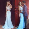 Two Pieces Strapless Blue Lace Mermaid Fashion Evening Affordable Long Prom Dress, PD0190