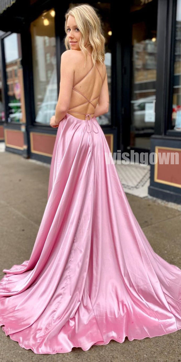 V-neck Spaghetti Strap Charming Split Front Long Prom Dresses PG1177