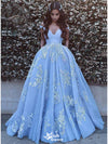 Gorgeous Blue A-Line Off Shoulder V Neck Lace Appliques Long Prom Dresses,Evening Gowns,WGP353