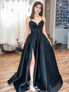 Elegant Black Spaghetti Strap A-Line Side Slit Long Sleeveless Popular Long Evening Dresses, Formal Dresses, WGP708