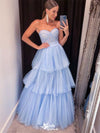Elegant Blue A-Line Sweetheart Sleeveless Ruffles Long Formal Prom Gowns,Evening Dresses,WGP364