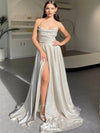Elegant White Spaghetti Strap A-line Side Slit Sleeveless Party Prom Dresses,Evening Dress Online, WGP838