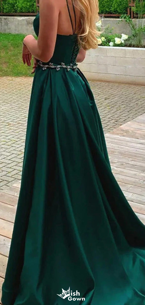 Elegant Spaghetti Strap V-neck A-line Long Prom Dress Ideas, Evening Party Dresses,WGP1488