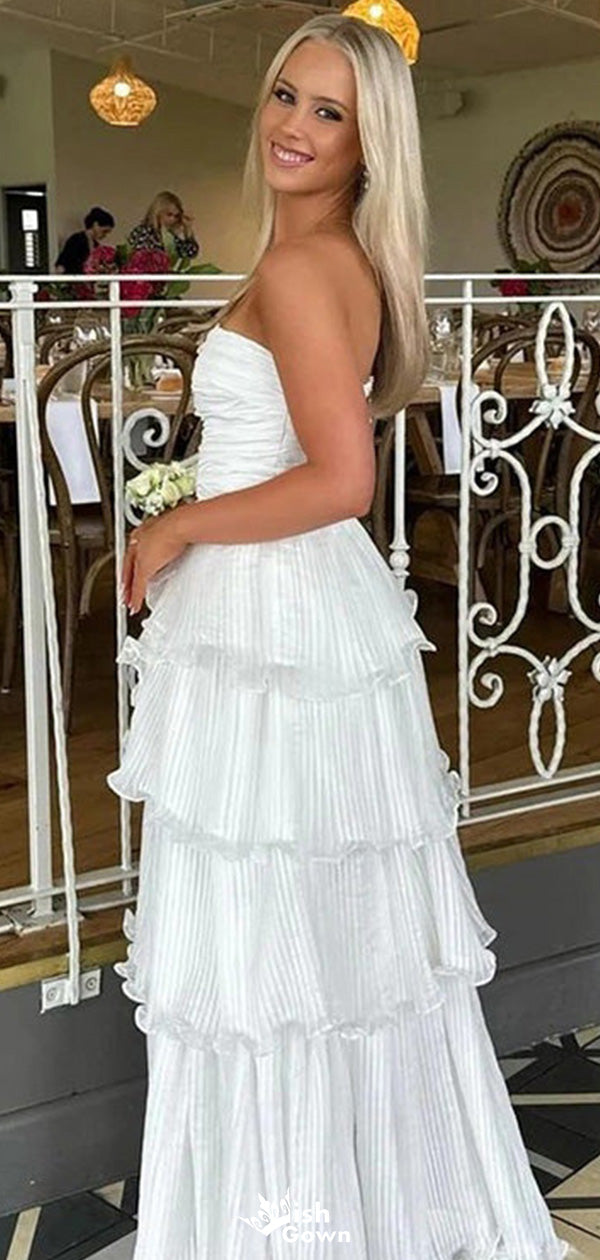 Elegant Straight Across Strapless A-line Long Prom Dress Ideas, Evening Party Dresses,WGP1250
