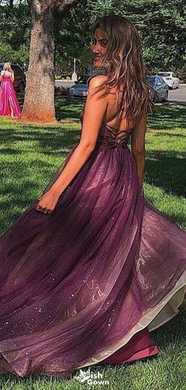 Elegant V-neck Spaghetti Strap A-line Long Prom Dress Ideas, Evening Party Dresses,WGP1299