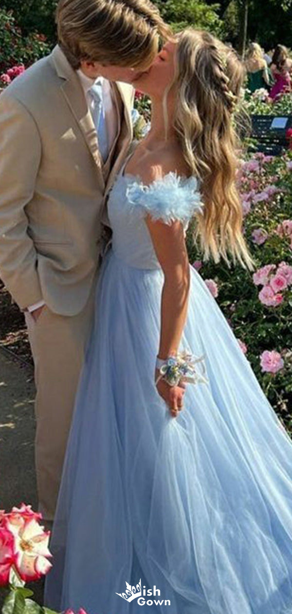 Gorgeous Off-shoulder A-line Long Prom Dress Ideas, Evening Party Dres
