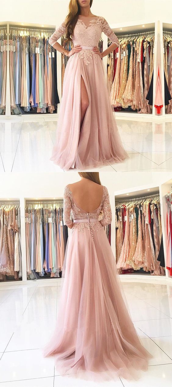 Long Sleeve Side Split Tulle Formal Evening Cheap Long Prom Dresses, WG791