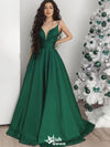 Elegant Green Spaghetti Strap A-Line Party Prom Dresses,Evening Dress Online, WGP811