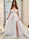Elegant White Off Shoulder A-Line Side Slit Party Prom Dresses,Evening Dress Online, WGP820