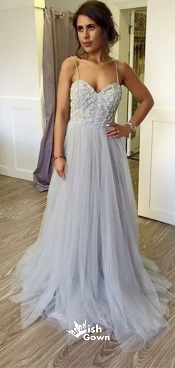 Straps Tulle Charming Affordable Evening Party Long Prom Dress, PD0166