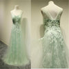 Tulle Sweet Unique Green Lace Formal A line Cheap Custom Make Evening Long Prom Dress, PD0193