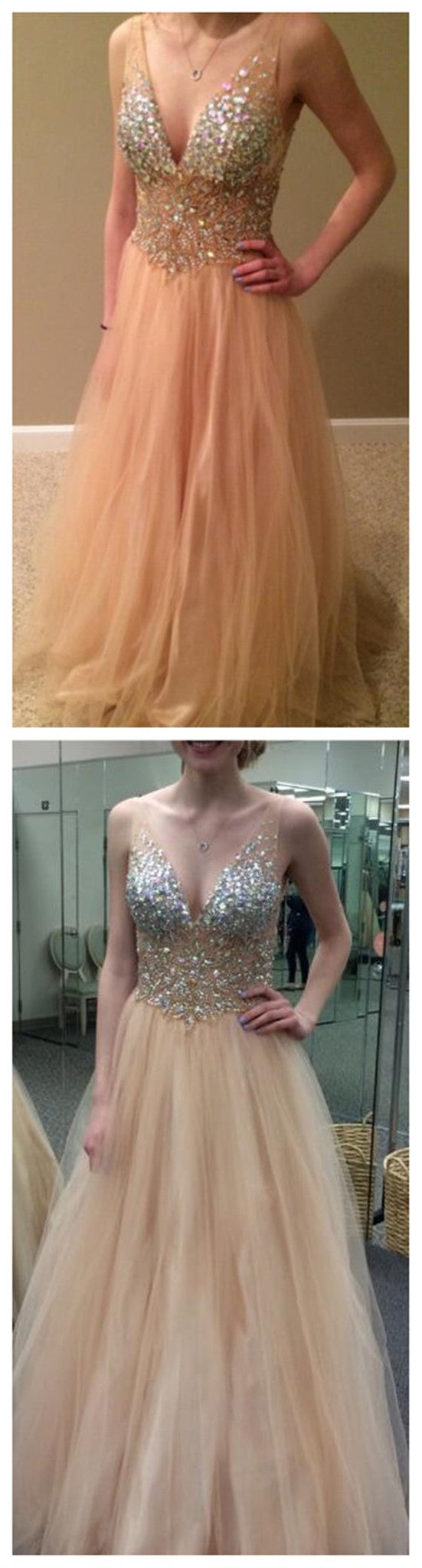 V-Neck Sexy Tulle Sparkle Evening Party Gorgeous Long Prom Dress Online, PD0127