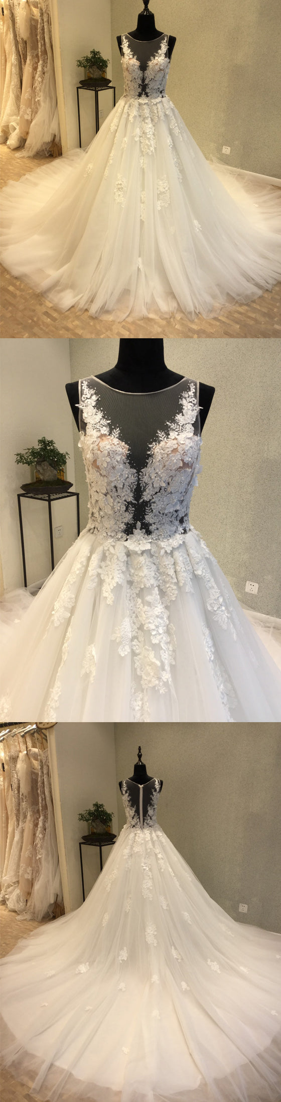 Beautiful Unique Sexy Tulle Applique Gorgeous Bridal Long Wedding Dress, WG1202