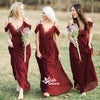Burgundy Off Shoulder Spaghetti Strap Chiffon Lace V-neck Long Pretty Bridesmaid Dresses, WG389