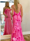 Charming Pink Mermaid Spaghetti Straps Square Backless Ruffle Cheap Maxi Long Party Prom Gowns,Evening Dresses,WGP448