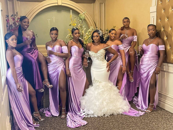 Lilac One Shoulder Sweetheart Soft Satin Slits Long Mermaid Bridesmaid Dresses, WGM109