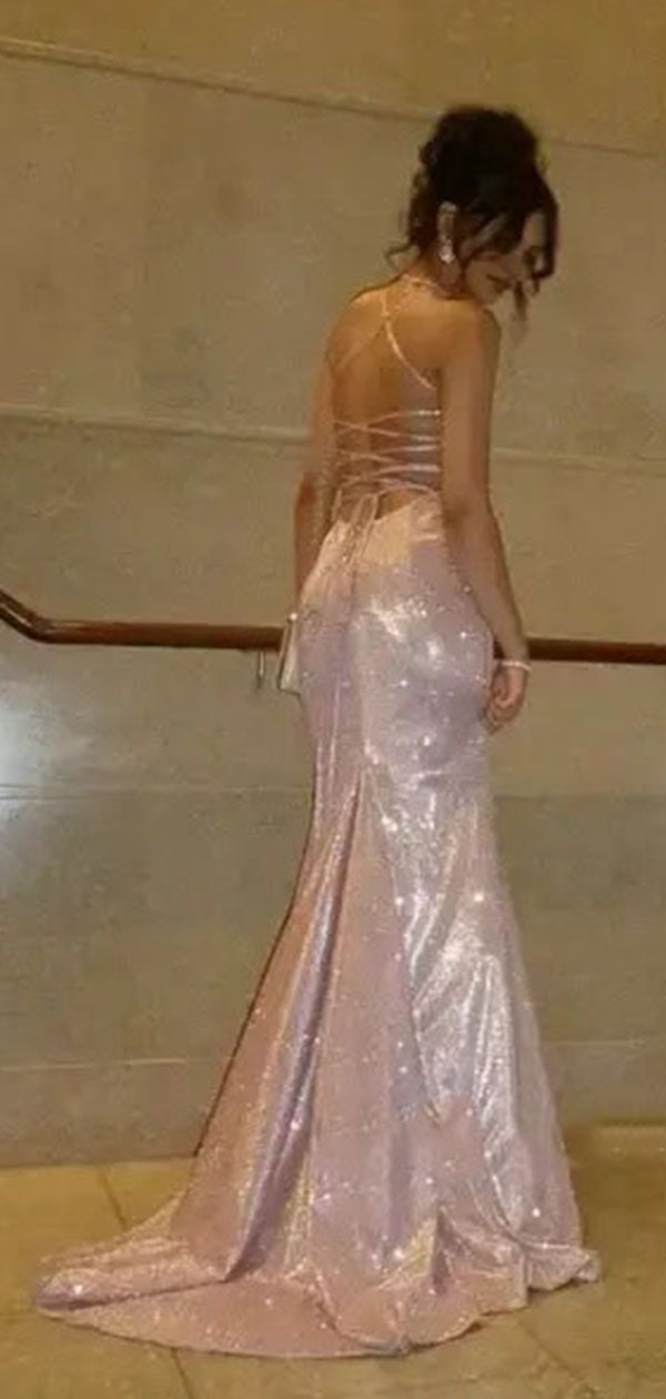 Sparkly Pink Spaghetti Strap Mermaid Long Prom Dress Ideas, Evening Party Dresses, WGP2009