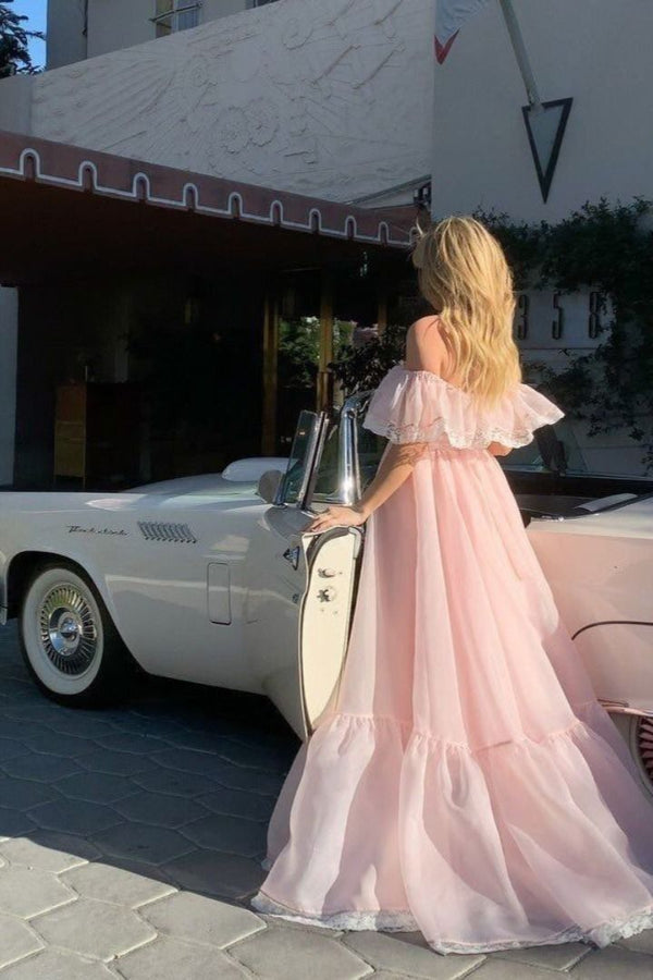Elegant Off-the-Shoulder Organza Prom Dress Pink A-Line Formal Gown,WGP2129