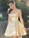 Champagne Gold Spaghetti Strap Lace Up Short Taffeta Casual Homecoming Prom Dress, WGP053
