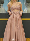 Modern Pink A-Line Prom Dress Unique Cut-Out Bodice Strappy V-Neck Pleated Evening Gown,WGP2076