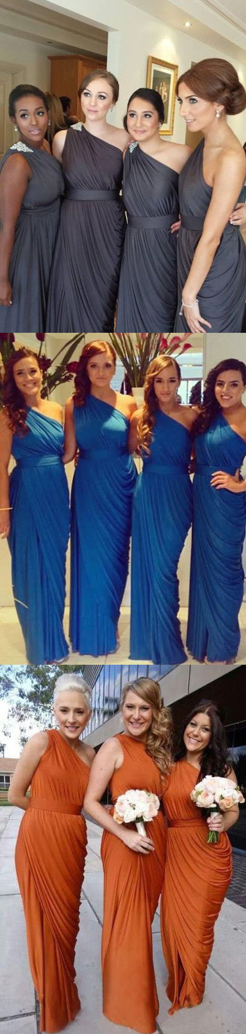 Pleating Chiffon One Shoulder Dark Grey Floor Length Simple Elegant Online Discount Bridesmaid Dresses, WG129