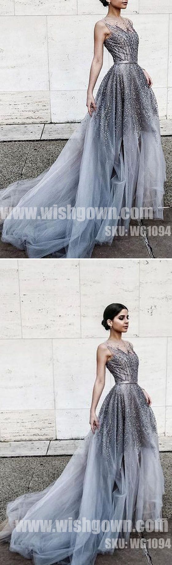 Charming Sparkle Affordable Tulle Beading Evening Long Prom Dresses, WG1094