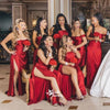 Red Off Shopulder Soft Satin Mermaid Sexy Long Wedding Bridesmaid Dres