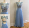 Young Girls Cap Sleeve Open Back Formal Chiffon Long Prom Dresses, WG293