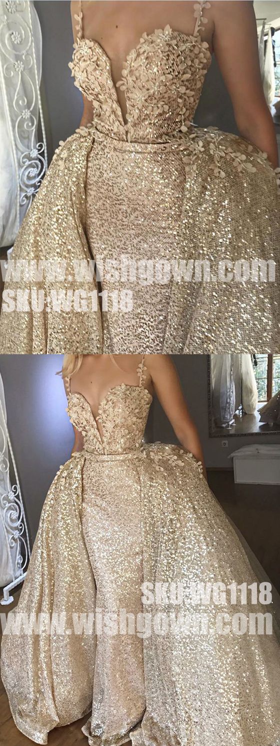 Affordable Spaghetti Strap Sparkle Sexy Popular Long Evening Prom Dresses, WG1118