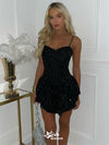 Glowing Black Spaghetti Strap Popular Cheap Short Homecoming Dresses, EPT201
