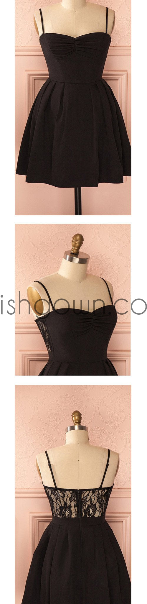 Spaghetti strap black simple lace cheap sexy homecoming prom dress